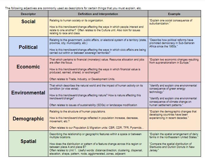 ONLY UNITS 1-5 WILL BE ON THE HUMAN GEOGRAPHY TEST THIS YEAR: 2020