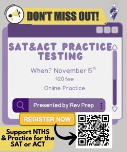 This is a great way for students to gain valuable test experience while supporting NTHS activities at our school. The $20 fee goes directly toward student scholarships and NTHS program support.